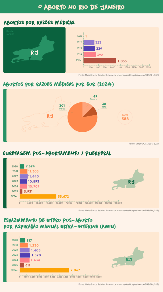 Entre 2021 e 2024, 3.859 pessoas realizaram aborto por razões médicas e legais na região Sudeste, segundo o Sistema de Informações Hospitalares do SUS (SIH/SUS). Enquanto isso, entre 2020 e 2025, 28.837 passaram pelo procedimento de aspiração manual intrauterina (AMIU). Os números de AMIU não especificam o tipo de aborto relacionado, o método pode ser aplicado em abortos espontâneos, por exemplo, quando deixam resíduos no útero.