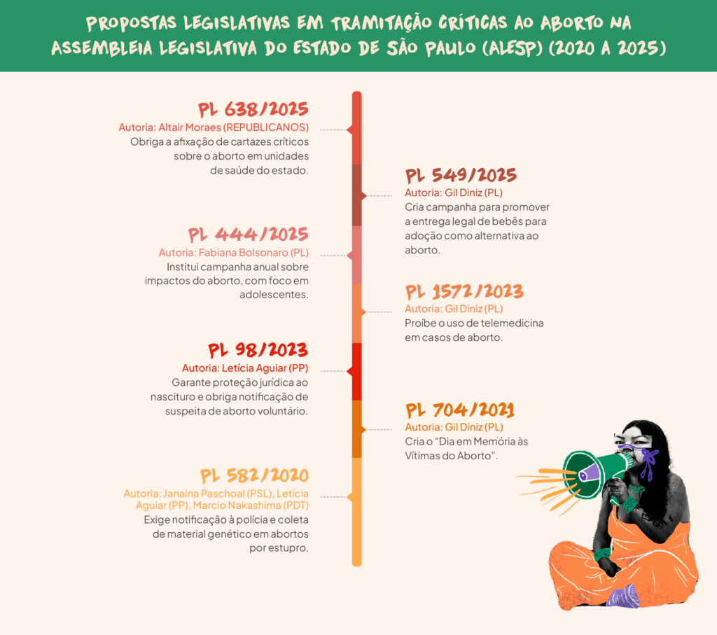 Entre os anos de 2020 e 2025, diversos projetos de lei em tramitação na Assembleia Legislativa do Estado de São Paulo (ALESP) evidenciaram um movimento político crescente voltado à restrição da prática do aborto e à proteção jurídica do nascituro — embrião ou feto em desenvolvimento dentro do útero, mas ainda não nascido.